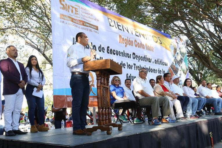 Fue en el marco de la inauguración de la ‘Jornada de Encuentros Deportivos, Artísticos y Culturales de los Trabajadores de la Educación Región Costa Norte 2020’, donde el alcalde compartió esta buena noticia con los docentes, un tema que dijo abordó recientemente con el secretario general de la sección 16 del SNTE, Elpidio Yáñez Rubio, para dar respuesta a esta problemática que se viene arrastrando desde hace algunos años, como es la falta de este hospital.