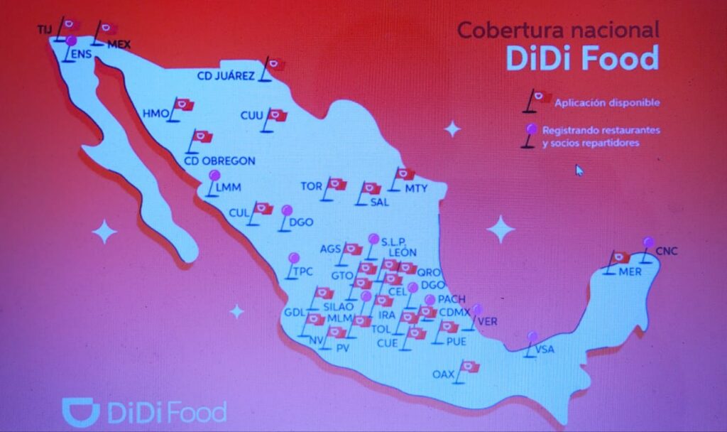 En México, opera en 43 ciudades (tanto en DiDi Food como DiDi Pasajeros), y llega al 50% de la población mexicana con viajes desde los 18 pesos.