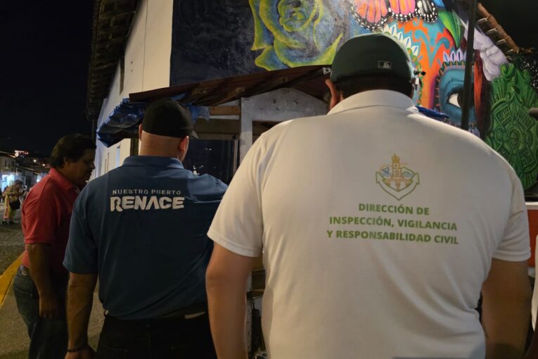 Puerto Vallarta, Jal.- Con motivo de las peregrinaciones, la dirección de Inspección, Vigilancia y Responsabilidad Civil, así como Padrón y Licencias, llevan a cabo un operativo para supervisar los puestos instalados desde la calle 31 de Octubre hasta la Presidencia Municipal de Puerto Vallarta. El objetivo es verificar que estos se encuentren ubicados en los lugares designados y que cumplan con las reglas establecidas al momento de su instalación.