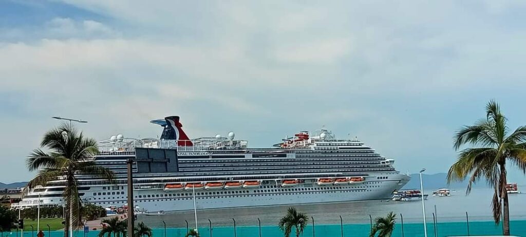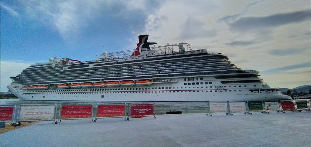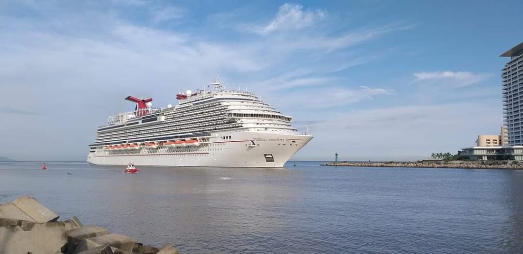 Puerto Vallarta, Jal.- Procedente del Long-Beach, California, el crucero Panorama, de la naviera Carnival Cruices atracó este martes en el puerto de Vallarta con más de 3 mil pasajeros a bordo, reiniciando con ello la actividad naviera luego de más de un año de que fue suspendida debido a la pandilla de coronavirus.