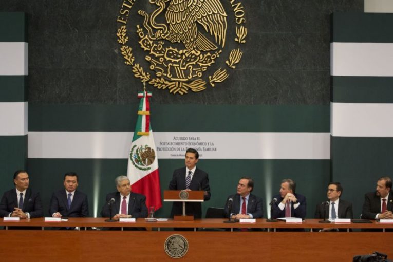 El pacto fue firmado por representantes de los tres sectores en la residencia presidencial de Los Pinos, junto con el presidente Enrique Peña Nieto, quien advirtió que el gobierno vigilará y sancionará cualquier abuso.