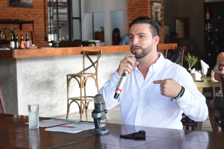 Puerto Vallarta, Jal.- Este lunes, el candidato del Partido Verde a la presidencia municipal de Puerto Vallarta, Luis Munguía, presentó en rueda de prensa, los cinco ejes y 21 proyectos estratégicos de su Gobierno.
