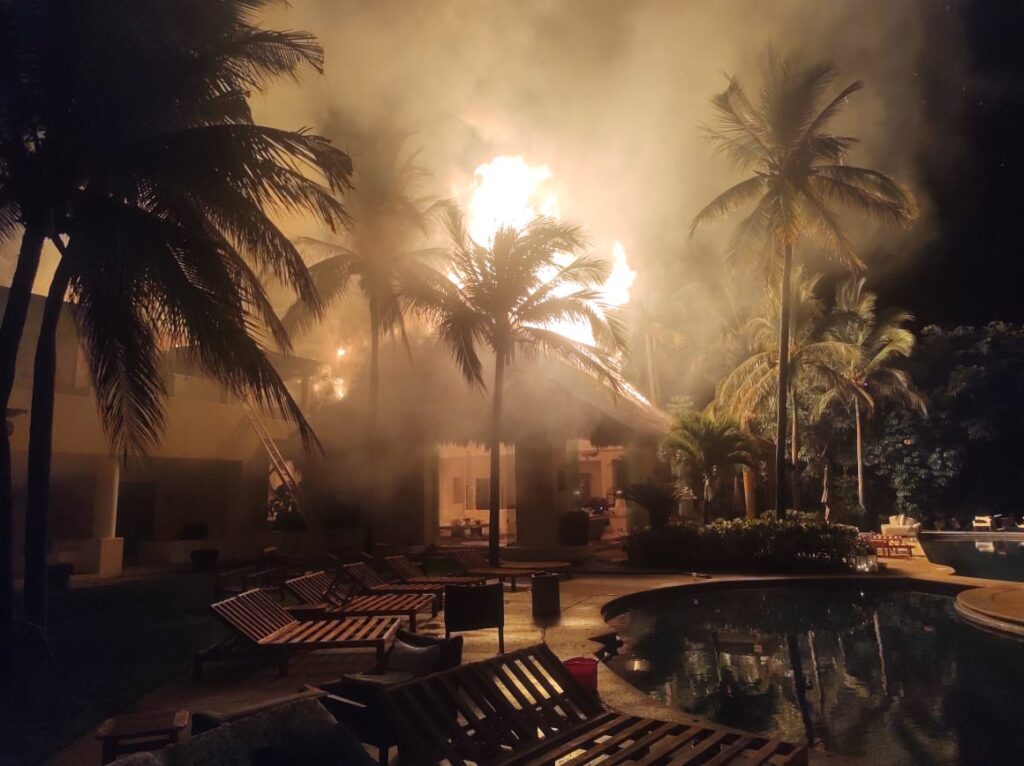 Al arribar al lugar, elementos de Protección Civil y Bomberos de Bahía de Banderas, encontró a personal de mantenimiento del lugar tratando de sofocar las llamas, por lo que había hecho ya repliegue hacía la zona de playa y posteriormente se evacuó a 22 huéspedes hacia el hotel W, dónde permanecieron sanos y salvos.