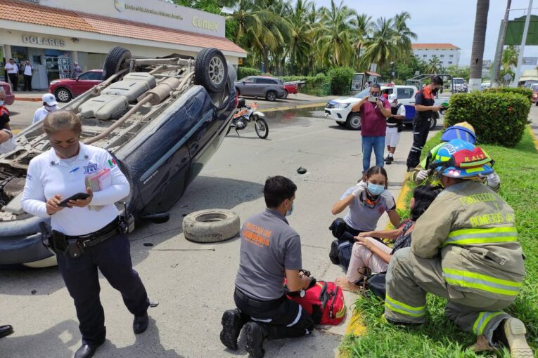 Puerto Vallarta, Jal.- La volcadura de una camioneta sobre la avenida principal de Puerto Vallarta genero el bloqueo de la misma, debido a lo aparatoso del percance. Afortunadamente la conductora de la unidad resultó con lesiones laves.